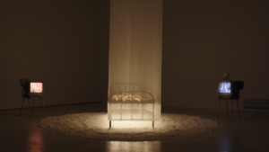 Η Λήδα Παπακωνσταντίνου (γ. 1945) είναι καλλιτέχνις, από τις πρωτοπόρους της περφόρμανς στην Ελλάδα, με παράλληλη δραστηριότητα στο εξωτερικό. Στο έργο της συνδυάζει εγκαταστάσεις, βίντεο και γλυπτά από διάφορα υλικά. Ήταν από τις πρώτες Ελληνίδες καλλιτέχνιδες που ασχολήθηκαν με μορφές τέχνης όπως οι in situ εγκαταστάσεις, τα χάπενινγκ και οι δράσεις. Οι θεματικές του έργου της είναι το ανθρώπινο σώμα, η έμφυλη ταυτότητα και η καταγραφή της μνήμης και του χρόνου. Έχει συμμετάσχει μεταξύ άλλων στην 20η Μπιενάλε του Σάο Πάολο το 1989, ως τιμώμενη καλλιτέχνις στην 1η Μπιενάλε Σύγχρονης Τέχνης Θεσσαλονίκης το 2007, στην 4η Μπιενάλε της Αθήνας το 2013 και στο 4ο Φεστιβάλ Περφόρμανς Θεσσαλονίκης το 2015. Το 2023 το Εθνικό Μουσείο Σύγχρονης Τέχνης παρουσίασε την πρώτη μεγάλη αναδρομική της έκθεση με τίτλο «Χρόνος στα χέρια μου». Ζει και εργάζεται στις Σπέτσες.